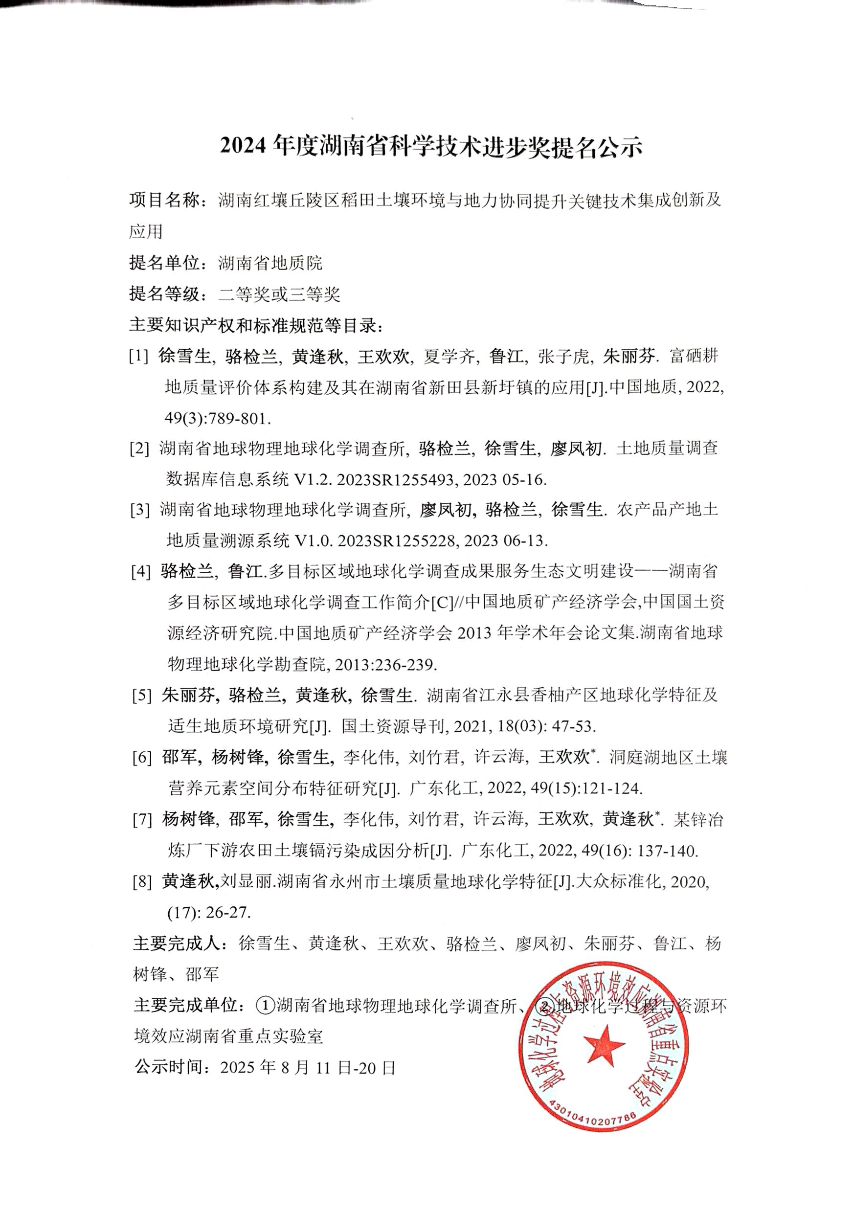 2024年度湖南省科学技术奖申报项目公示